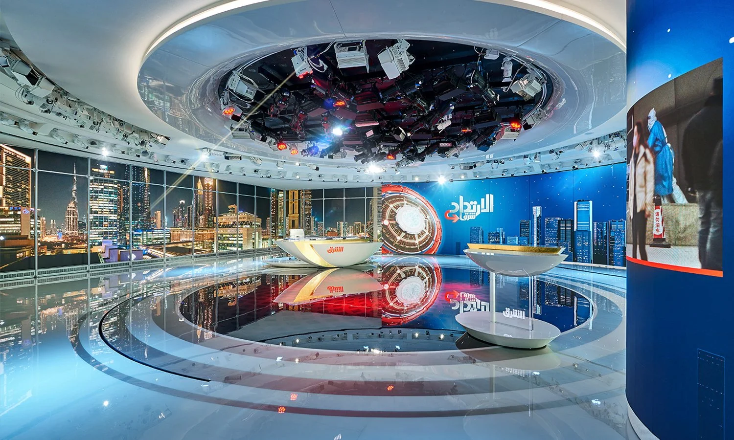 Asharq News Studios debuted on November 11, 2020, as a cutting-edge broadcast facility nestled within Dubai International Financial Centre (DIFC). Spanning 57,000 square feet (5,300 square meters), the studios combine advanced technology with sophisticated design to support a global media network.