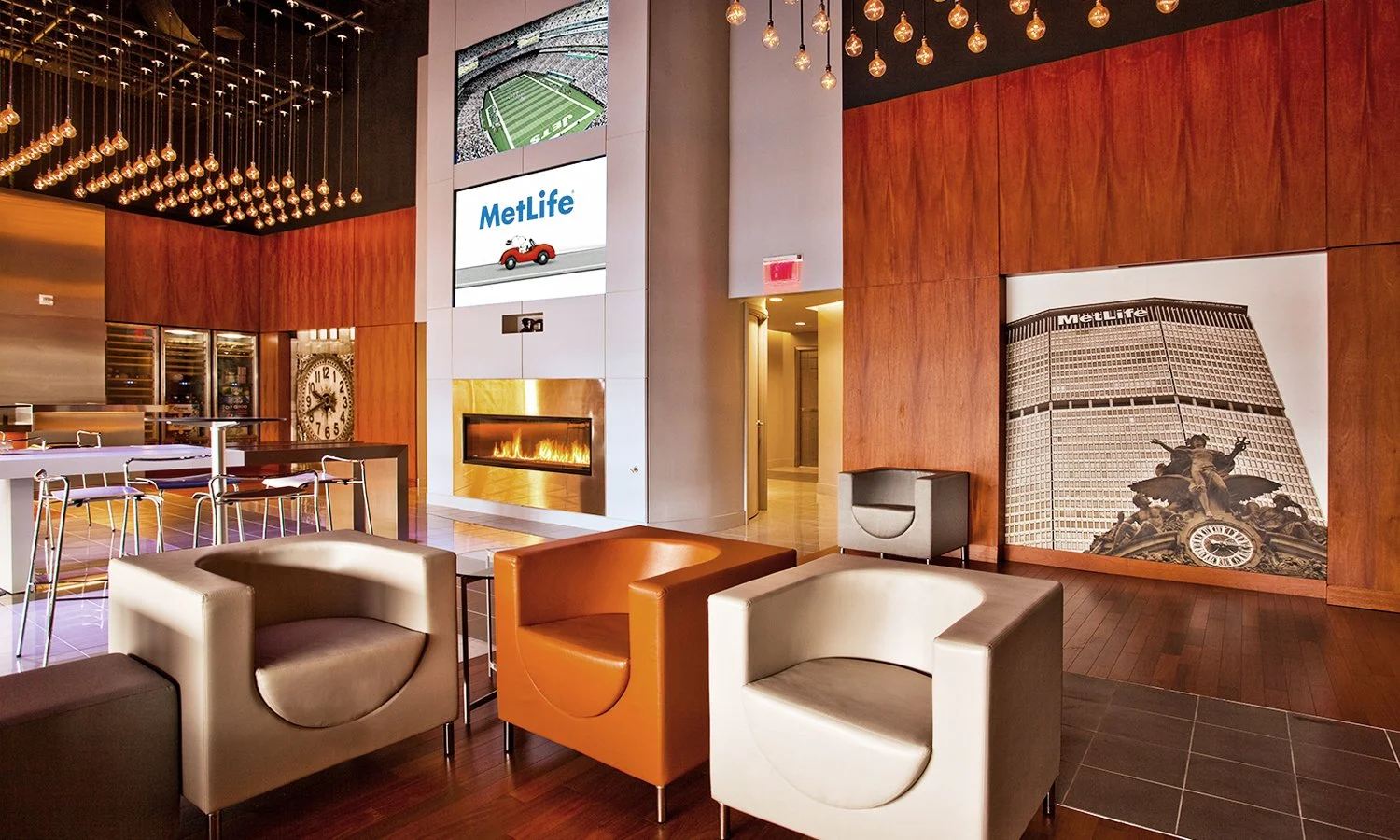 The design weaves together expansive gathering areas, interactive displays, and hospitality zones, all curated to amplify the excitement of game day through the lens of MetLife’s brand hospitality. Materials and lighting articulate a modern, bold aesthetic that resonates with the stadium’s massive scale and cultural significance.